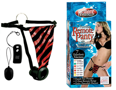 Трусики с вагинальной пробочкой-фаллосом, в которую вставляется вибро-яичко на дистанционном управлении. Настоящая забава для мужчины! Да, для мужчины, потому что именно он может держать пульт и подавать вибрацию на расстоянии когда ему заблагорассудится.